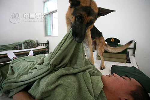 廣東邊防七支隊(duì)警犬中隊(duì)為七支隊(duì)所培養(yǎng)的緝毒、搜爆等專業(yè)警犬,每年在協(xié)助七支隊(duì)官兵偵破走私、偷渡、販毒等案件和打擊罪惡中立下了赫赫戰(zhàn)功,然而它們也有著十分感性的一面,每年老兵退伍離隊(duì)后,它們都表現(xiàn)的十分難過,個別警犬情緒低落,不思飲食,需要經(jīng)過很長時(shí)間才能恢復(fù)。陳建華 陳培高 符鐘 攝