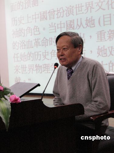 12月2日,著名美籍華人物理學(xué)家楊振寧在南開(kāi)大學(xué)以《1957年宇稱(chēng)不守恒在物理界所引起的震蕩》為題,發(fā)表演講。演講中,楊振寧回顧了宇稱(chēng)不守恒定律問(wèn)世前后的細(xì)節(jié),以及此后的進(jìn)展。他強(qiáng)調(diào),從事科學(xué)研究“要有眼光、有能力、能堅(jiān)持”。50年前,楊振寧與李政道因發(fā)現(xiàn)宇稱(chēng)不守恒定律而成為首獲諾貝爾獎(jiǎng)的華人。中新社發(fā) 田齊 攝