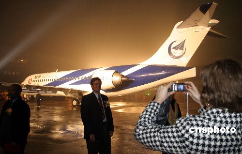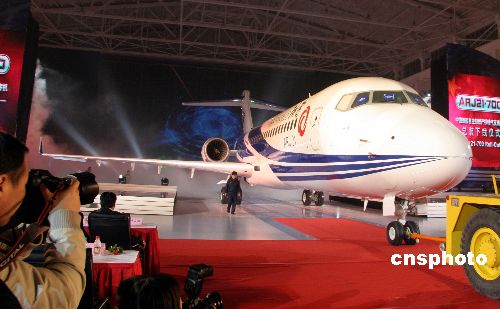 十二月二十一日下午,由中國航空工業(yè)第一集團公司(中國一航)自行研制生產(chǎn)的中國首架自主知識產(chǎn)權(quán)噴氣支線客機ARJ21-700飛機,在上海飛機制造廠順利實現(xiàn)總裝下線。此舉表明,中國在民用飛機科研和制造領(lǐng)域取得突破性進展,中國自主研制的先進噴氣支線客機已成為世界民用客機大家庭的新成員。中新社發(fā) 孫自法 攝