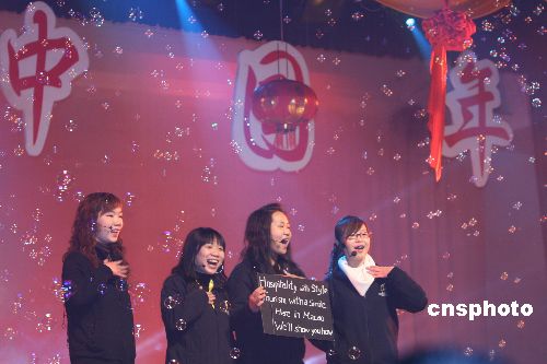 12月26日晚,由澳門大學(xué)等8所高校30名學(xué)生組成的訪問團(tuán)來到江蘇淮陰師范學(xué)院,與該校師生舉行一場“好運(yùn)中國年”交流演出。中新社發(fā) 蘇杭 攝