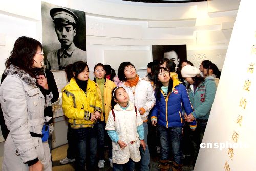 浙江紹興的中學生們在周恩來紀念館參觀。