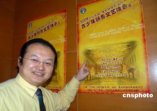 1月22日,中國(guó)對(duì)外文化集團(tuán)在北京宣布,由中國(guó)對(duì)外文化集團(tuán)等單位聯(lián)合主辦的“文化中國(guó)2008維也納金色大廳青少年新春文藝晚會(huì)”,將于29日晚在奧地利維也納金色大廳舉行。這是中國(guó)青少年首次走進(jìn)維也納金色大廳進(jìn)行文藝表演。中新社發(fā) 潘旭臨 攝