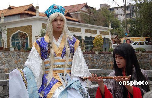 2月12日是農(nóng)歷大年初六,廣西南寧幾名高中學(xué)生在當(dāng)?shù)氐拿褡逦奈镌吠嫫餭osplay(動漫真人秀),體驗(yàn)另類春節(jié)的感覺。據(jù)悉,自一九九七年cosplay傳入中國以來,迄今全國有cos經(jīng)驗(yàn)和參加過cos活動的人數(shù)在十萬以上。中新社發(fā) 劉萬強(qiáng) 攝