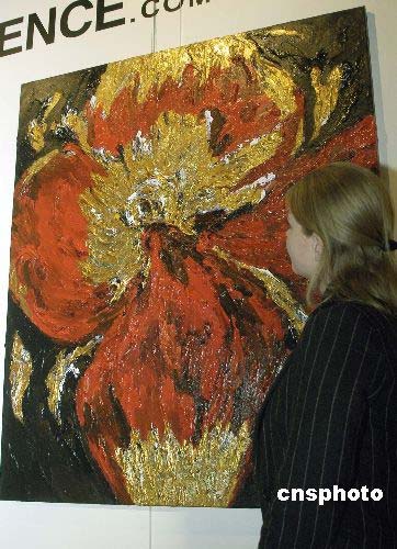 第三十屆紐約藝術(shù)博覽會28日在曼哈頓開幕,為期5天的博覽會將展出數(shù)十個國家的近千名藝術(shù)家的美術(shù)、雕塑、攝影等藝術(shù)作品。圖為來自丹麥的一名藝術(shù)家以黃金為創(chuàng)作材料的油畫作品《花》。中新社發(fā) 鄧悅 攝