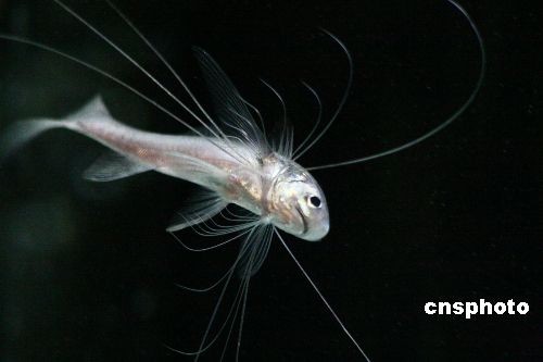 3月16日,“千手觀音”魚在上海海洋水族館展出。這種珍稀魚類名叫長指馬鲅,是該館最近引進的。長指馬鲅主要分布在南亞地區(qū)的海域中,腹部長著很多細線狀的鰭條,俗稱“千手觀音”。中新社發(fā) 穎慧 攝