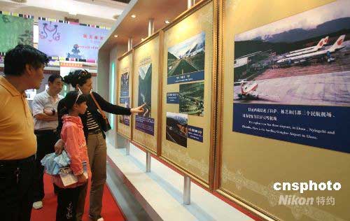 5月3日,”西藏今昔——大型主題展“正在北京民族文化宮舉辦。展覽分為西藏歷史與封建農奴制和日新月異的新西藏兩個部分,圖為觀眾正在參觀日新月異的新西藏展區(qū)。中新社發(fā) 張勤 攝