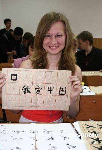 5月7日,應(yīng)俄羅斯布拉戈維申斯克市國(guó)立師范大學(xué)孔子學(xué)院邀請(qǐng),黑河學(xué)院的兩位書法教師到孔子學(xué)院,向俄羅斯學(xué)生講解并傳授中國(guó)傳統(tǒng)書法藝術(shù)。據(jù)悉,此次活動(dòng)是為慶祝俄羅斯布拉戈維申斯克市國(guó)立師范大學(xué)孔子學(xué)院成立一周年而舉辦。中新社發(fā) 邱齊龍 攝