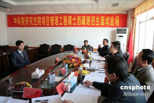 5月8日,中國(guó)科學(xué)院研究生院首次西藏研究生班招生在拉薩面試。今天是北京奧運(yùn)圣火勝利登頂珠峰的一天,上午的招生面試也推遲了一個(gè)小時(shí),專家及考生觀看了北京奧運(yùn)圣火勝利登頂珠峰的電視直播。隨后來(lái)自西藏各個(gè)行業(yè)的40多名藏漢考生懷著激動(dòng)和喜悅的心情參加了本次面試答辯。中新社發(fā) 扎西朗杰 攝