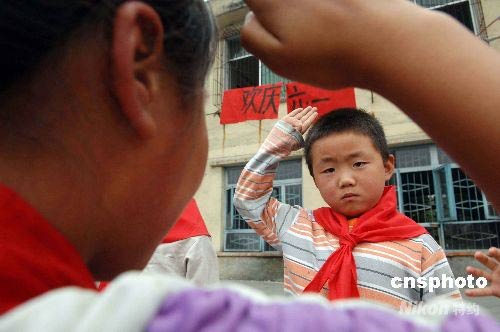 6月1日,四川什邡市湔氐鎮(zhèn)中心小學(xué)、龍居中心小學(xué)等地震災(zāi)區(qū)的孩子,過了一個特殊的六一國際兒童節(jié)。中新社發(fā) 陳文 攝