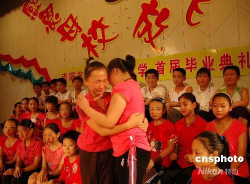 6月25日,河南南陽市臥龍區(qū)第二十一小學(xué)舉辦畢業(yè)典禮。80多名畢業(yè)生在舞臺(tái)上和老師一起回憶六年中的點(diǎn)點(diǎn)滴滴,他們通過才藝展示、贈(zèng)送鮮花等形式盡情抒發(fā)對(duì)老師、父母和同學(xué)們的感激。據(jù)悉,今年該區(qū)所有學(xué)校將首次改革傳統(tǒng)模式,舉行這種“個(gè)性化”的畢業(yè)典禮。中新社發(fā) 熊運(yùn)彬 攝
