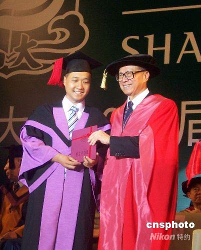 圖:李嘉誠為汕頭大學博士生頒發(fā)畢業(yè)證書