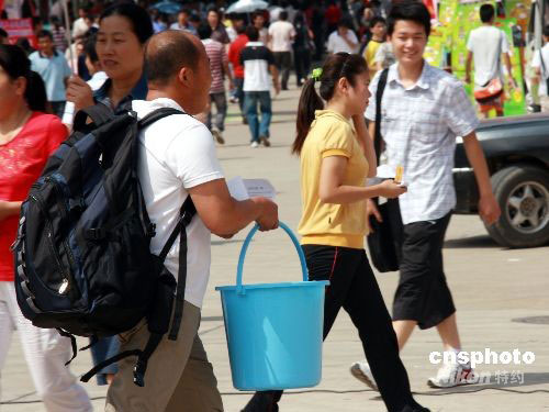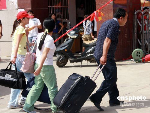 9月6日,在安徽省淮北煤炭師范學(xué)院,許多學(xué)生家長(zhǎng)為子女?dāng)y帶生活用品,辛苦護(hù)送其入學(xué)。中新社發(fā) 萬善朝 攝