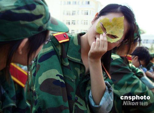 全國各高校新生一開學便開始大學“第一堂課”——軍訓。揚州大學文學院針對194名“90后”大一新生,提出了“快樂軍訓”的口號,除了為期10多天的正常軍事訓練外,學院還開展了趣味游戲、“軍花”評比、內(nèi)務競賽等活動,為新生的軍訓生活增添了一份樂趣,同時促進彼此間的認識和了解。中新社發(fā) 陳中秋 攝