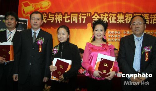 10月8日是中國(guó)航天日,中國(guó)宇航學(xué)會(huì)聯(lián)合中國(guó)運(yùn)載火箭技術(shù)研究院、中國(guó)空間技術(shù)研究院、中國(guó)航天員科研訓(xùn)練中心等,當(dāng)天下午在北京共同舉辦“我與神七同行”全球征集祝福語(yǔ)活動(dòng)頒獎(jiǎng)儀式。中新社發(fā) 孫自法 攝