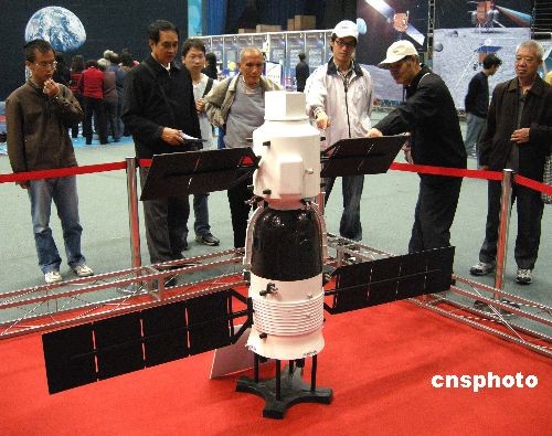 10月20日,嫦娥探月工程暨神舟七號(hào)科普展在北京航空航天大學(xué)舉行。參觀者可以體驗(yàn)穿著高仿真的宇航服拍照,同時(shí)還可觀看神七返回艙模型、嫦娥一號(hào)衛(wèi)星模型,月球稱(chēng)等展品。展覽集合了探月工程和神七載人航天工程的部分實(shí)物和大量模型圖片等,吸引了眾多京城市民前來(lái)觀看。 中新社發(fā) 玉龍 攝