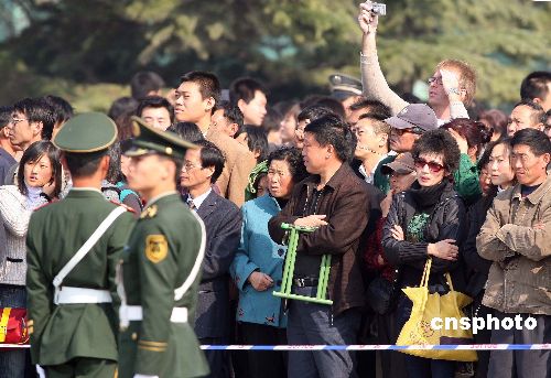 十月二十一日,中國共產(chǎn)黨第十七次全國代表大會在北京人民大會堂閉幕,天安門廣場外聚集許多關(guān)注大會盛況的民眾。中新社發(fā) 毛建軍 攝