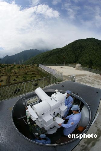 10月22日,西昌衛(wèi)星發(fā)射中心技術(shù)人員調(diào)試跟蹤火箭前期軌道的光學(xué)經(jīng)緯儀。中國國防科工委當晚在北京宣布,“嫦娥一號”衛(wèi)星將于24日至26日在西昌衛(wèi)星發(fā)射中心擇機發(fā)射,首選發(fā)射窗口為24日18時左右。中新社發(fā) 秦憲安 攝