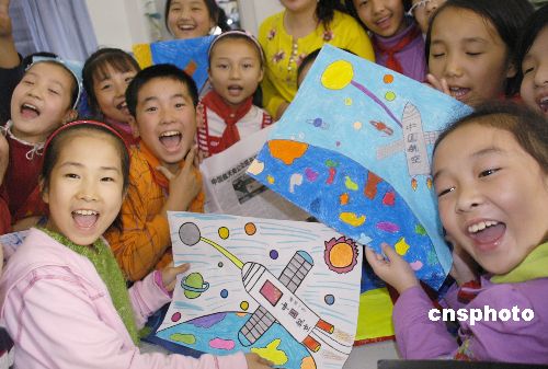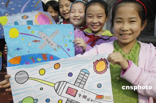10月25日,安徽省蕪湖市范羅山小學(xué)開展 “巧手繪‘嫦娥’圓我飛天夢”活動,科技輔導(dǎo)員用繪畫、模型、報紙等形式向小學(xué)生講解“嫦娥一號”飛天探月知識,圓小學(xué)生飛天夢。中新社發(fā) 老春 攝