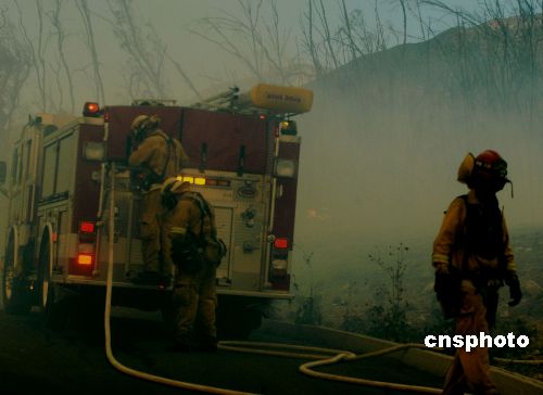 十月二十六日,美國加州大火第六天,消防員基本撲滅洛杉磯十四處山火,準備轉戰(zhàn)依然燃燒的圣地牙哥和橙縣,那里災情依然嚴峻。中新社發(fā) 賈國榮 攝