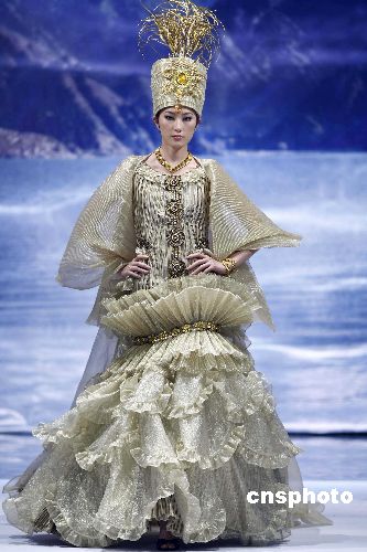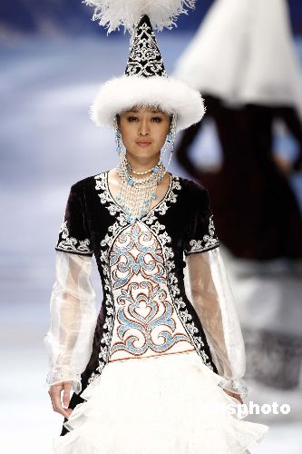 十一月四日,2007年中國國際時(shí)裝周在北京繼續(xù)進(jìn)行,在新疆服裝設(shè)計(jì)師孫秀琴時(shí)裝專場發(fā)布會上,設(shè)計(jì)師用質(zhì)樸的服裝語言為觀眾呈現(xiàn)了新疆優(yōu)美、燦爛的民族服飾文化。中新社發(fā) 盛佳鵬 攝