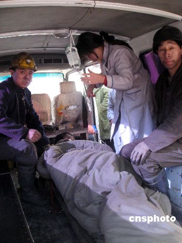 圖為獲救礦工被救護車送往醫(yī)院救治。