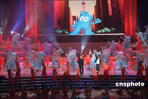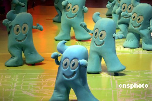 十二月十八日晚,備受海內(nèi)外矚目的中國二0一0年上海世博會吉祥物在上海大舞臺揭開神秘面紗。一個返璞歸真的、漢字“人”的藍色卡通造型——吉祥物“海寶”正式亮相!昂殹奔槲锏恼Q生,是海峽兩岸設(shè)計師共同的智慧結(jié)晶。其最初使用漢字充當吉祥物的創(chuàng)意始于臺灣知名設(shè)計師巫永堅,他的應征作品漢字卡通形象“大寶”在全球兩萬六千多件應征作品中脫穎而出,再經(jīng)過上海設(shè)計名家邵隆圖及其團隊的整合、再設(shè)計,“海寶”最終定型。中新社發(fā) 潘索菲 海牛 攝