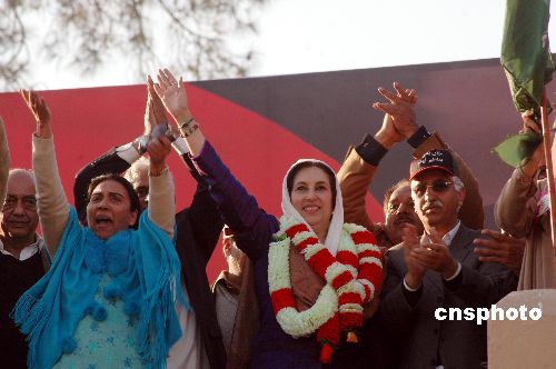 12月27日,巴基斯坦前總理貝布托參加集會。幾分鐘后,她遭遇自殺性爆炸襲擊而身亡。中新社發(fā) M0/CNSphoto 攝