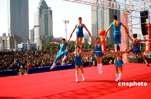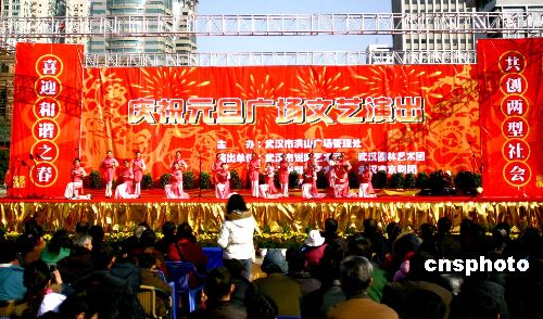 12月31日上午,武漢市在洪山廣場舉辦了主題為“共創(chuàng)兩型社會、喜迎和諧之春”綜藝節(jié)目,迎接新年到來。中新社發(fā) 余火焰 攝