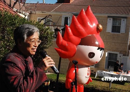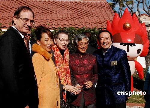 當地時間一月十二日,中國駐洛杉磯總領事張云在官邸盛邀美國政商法學界和智庫主流人士,與北京奧運會吉祥物福娃齊祝來賓中國新春佳節(jié)快樂。中新社發(fā) 賈國榮 攝