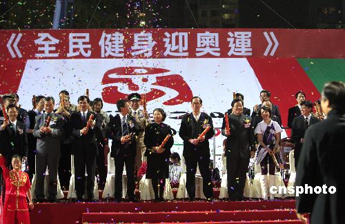 一月二十一日晚,香港舉行“全民健身迎奧運(yùn)”活動(dòng),慶祝奧運(yùn)倒計(jì)時(shí)二百天,特區(qū)民政事務(wù)局局長(zhǎng)曾德成、香港基本法委員會(huì)副主任梁愛(ài)詩(shī)、中聯(lián)辦青年工作部副部長(zhǎng)張春生等嘉賓及六千多名青少年參與活動(dòng)共迎奧運(yùn)。中新社發(fā) 王麗南 攝