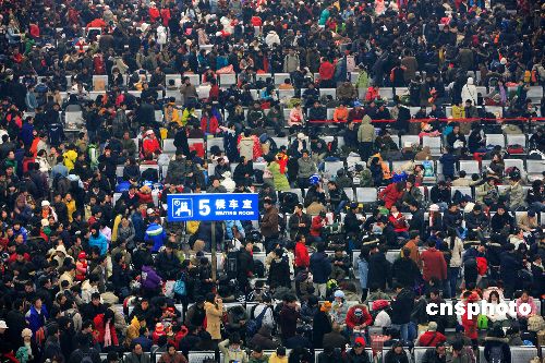 1月27日,湖北武昌火車站候車室內(nèi)擠滿了等待乘車的旅客。當(dāng)日,受雨雪天氣影響,廣鐵集團(tuán)湖南境內(nèi)京廣線供電接觸網(wǎng)多處斷電,電力機(jī)車無法通行,致使旅客列車出現(xiàn)多列晚點。武昌火車站采取措施,在新落成的候車室內(nèi)開通暖氣,確保滯留旅客不受凍。中新社發(fā) 宋建春 攝