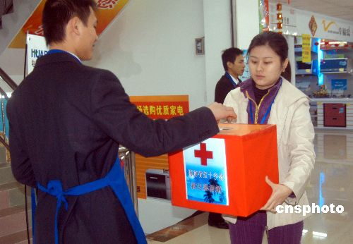 2008年2月5日,瓊海市民在踴躍捐款救災(zāi)。我國南方部分地區(qū)遭受雪災(zāi)牽動全國人民的心,在海南省紅十會倡議組織下,連日來海南各界群眾積極捐款捐物,向災(zāi)區(qū)人民獻愛心。中新社發(fā) 蒙鐘德 攝