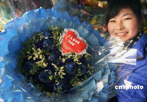 2月13日,安徽滁州的鮮花商店讓各色玫瑰花唱起主角,商家們看好節(jié)日經(jīng)濟,積極備戰(zhàn)情人節(jié)。市場上,紅色玫瑰以價廉物美占居份額最多,高檔品種有藍色妖姬、七彩皇后、綠美人等。中新社發(fā) 王家國 攝