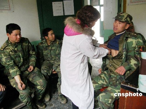 由于貴州受50年不遇的連續(xù)凝凍天氣的影響,輸電線(xiàn)路受到嚴(yán)重毀損,大部分地區(qū)停電停水,人民群眾的基本生活受到極大影響,工農(nóng)業(yè)生產(chǎn)全面停止。災(zāi)情發(fā)生后,成都軍區(qū)駐重慶某部,根據(jù)上級(jí)命令冒著嚴(yán)寒火速趕到受災(zāi)比較嚴(yán)重的貴州黔南搶修農(nóng)村電網(wǎng),保證當(dāng)?shù)鼐用裨缛沼蒙险彰麟。福泉市衛(wèi)生局獲悉后,積極組織醫(yī)務(wù)人員到抗災(zāi)一線(xiàn)為抗凍救災(zāi)部隊(duì)送醫(yī)送藥。中新社發(fā) 毛遠(yuǎn)富 攝