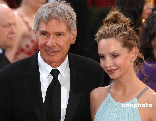 當?shù)貢r間2月24日晚,第八十屆奧斯卡頒獎典禮在好萊塢柯達劇場舉行。好萊塢明星哈里森·福特攜女友出席頒獎典禮。中新社發(fā) 張煒 攝