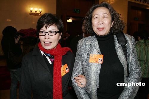 三月三日,在全國政協(xié)新委員名單上令人誤認(rèn)為是演藝明星范冰冰的俄語專家范冰冰(右)露真容,與中央電視臺新聞播音員李瑞英攜手進(jìn)入北京人民大會(huì)堂,出席全國政協(xié)十一屆一次會(huì)議開幕會(huì)。范冰冰委員身高近一米七二,能說一口流利俄語,是中國國際廣播電臺俄語部主任、首席播音員。中新社發(fā) 潘索菲 攝