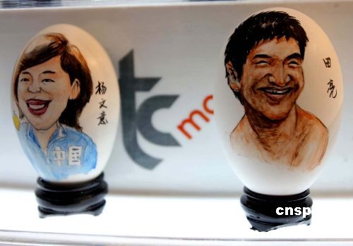 近日,香港世貿(mào)中心以?shī)W運(yùn)為主題,配合傳統(tǒng)民間藝術(shù)舉辦“復(fù)活蛋藝展”,給香港觀眾帶來(lái)充滿特色的蛋藝展覽。三部分二百件的彩繪蛋畫、蛋雕和卵石畫作品栩栩如生。圖為奧運(yùn)金牌風(fēng)云人物田亮、楊文意蛋雕。中新社發(fā) 洪少葵 攝