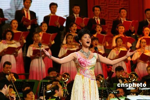 圖為中國著名女歌唱家宋祖英在晚會上演唱《陽光的愛》。中新社發(fā) 富田 攝