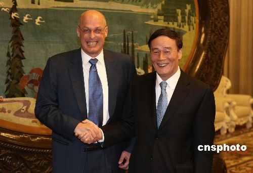 圖:王岐山與鮑爾森在北京舉行工作會談