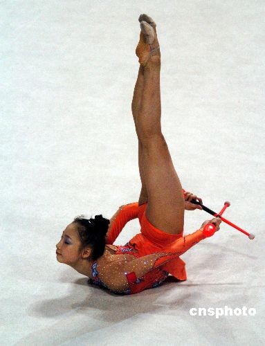 2008年4月6日,全國(guó)藝術(shù)體操冠軍賽在深圳體育館進(jìn)入第三天。由于這是北京奧運(yùn)前最后一次全國(guó)選拔積分賽,因此吸引了來(lái)自全國(guó)17支隊(duì)伍的精英參賽。深圳名將李紅楊在成年組個(gè)人全能比賽中獲得金牌。中新社發(fā) 吳峻 攝