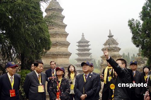圖:海峽兩岸黃埔老兵參觀嵩山少林寺