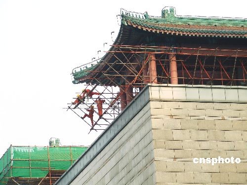 4月9日,北京西站搭起綠網(wǎng)準(zhǔn)備進(jìn)行環(huán)境“美容”,北京西站將以全新面貌接待中外游客迎接奧運(yùn)會(huì)的到來(lái)。此次環(huán)境整治工程涉及景觀照明、外墻清洗、古建油飾等項(xiàng)目。作者: 追影