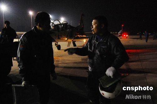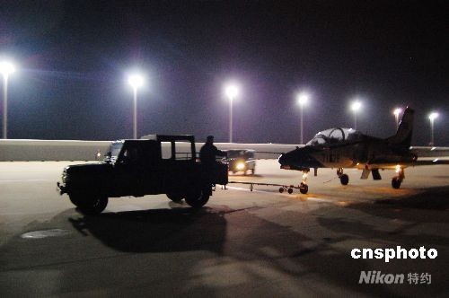 4月12日,濟空某飛行學院某團組織夜航飛行訓練。中新社發(fā) 耿國慶 攝