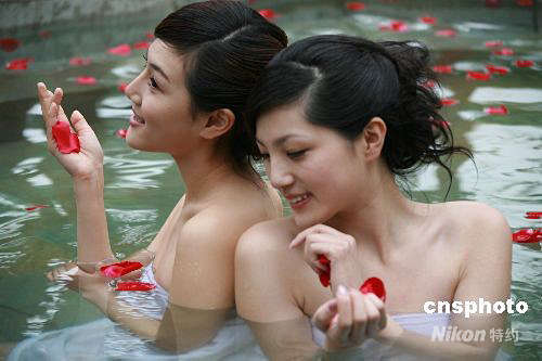 4月13日,安徽黃山醉溫泉湯池舉行模特秀。歷經(jīng)兩年勘測和開發(fā)后,安徽黃山醉溫泉已全面建成并投入使用。當(dāng)日,花瓣錦簇,香氣四溢,男女模特在44.4度的溫泉戲水,“秀”出風(fēng)情萬種、人與自然和諧共存的美好景象。中新社發(fā) 方也廣德 攝
