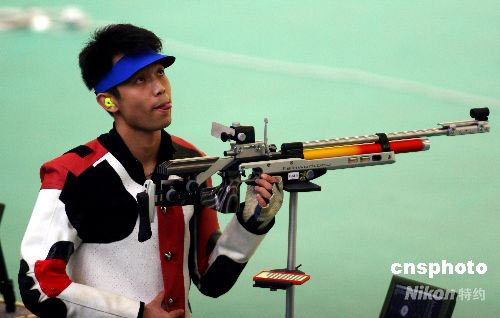 圖:朱啟南為中國(guó)隊(duì)射落射擊世界杯首金