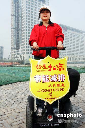 4月16日,北京一名奧運“鳥巢”的志愿者首次騎上奧運代步車進行服務(wù)。據(jù)介紹,北京奧運會賽時將有數(shù)十輛兩輪代步車被應(yīng)用到競賽及非競賽場館內(nèi)。其中,志愿者、安保以及維護人員進行巡視都將用到這種車。作者: 鄭雄增