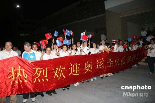 圖:中國駐泰國使館人員喜迎奧運(yùn)圣火
