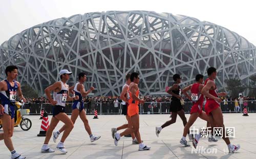 圖:“鳥(niǎo)巢”首次開(kāi)放進(jìn)行競(jìng)走挑戰(zhàn)賽