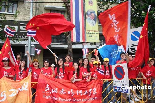 組圖:曼谷奧運(yùn)圣火傳遞現(xiàn)場(chǎng)目擊(7)