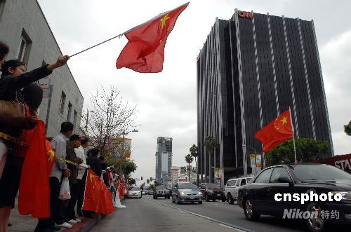 當(dāng)?shù)貢r(shí)間4月19日,洛杉磯爆發(fā)十幾年來最大規(guī)模的華人華僑抗議示威活動(dòng)。數(shù)千名華人華僑和留學(xué)生在CNN洛杉磯分部門前參加和平示威,要求CNN向公開鄭重道歉,并開除卡弗蒂。一些學(xué)生和僑民乘坐汽車在日落大道上來回穿梭,他們揮舞著五星紅旗和抗議標(biāo)語牌與兩側(cè)人行道的抗議人群相互呼應(yīng)。 中新社發(fā) 張煒 攝